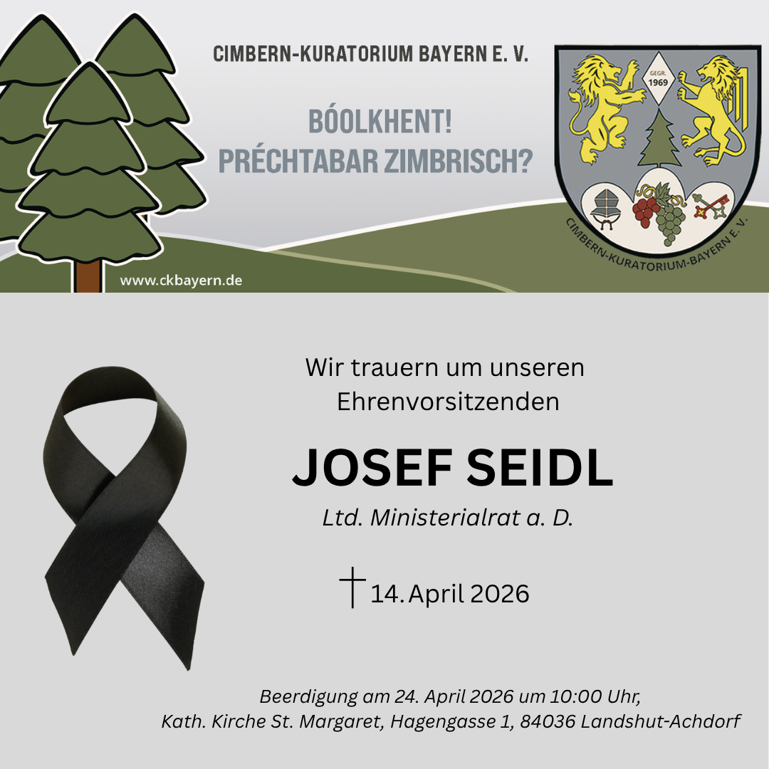 Wir trauern um unseren Ehrenvorsitzenden Josef Seidl, verst. am 14.04.2026