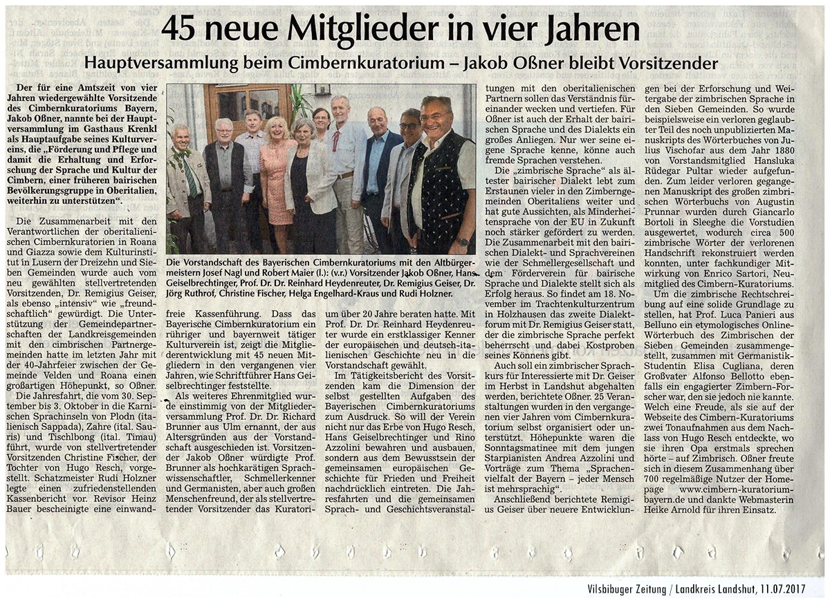 45 neue Mitglieder in vier Jahren - Hauptversammlung beim Cimbernkuratorium - Jakob Oßner bleibt Vorsitzender