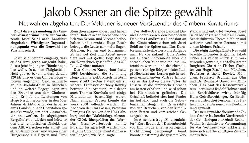 Neuwahlen abgehalten: Der Veldener ist neuer Vorsitzender des Cimbern-Kuratoriums