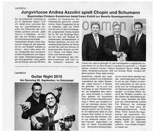 Bayerisches Cimbern-Kuratorium bietet freien Eintritt zur Benefiz-Sonntagsmatinée