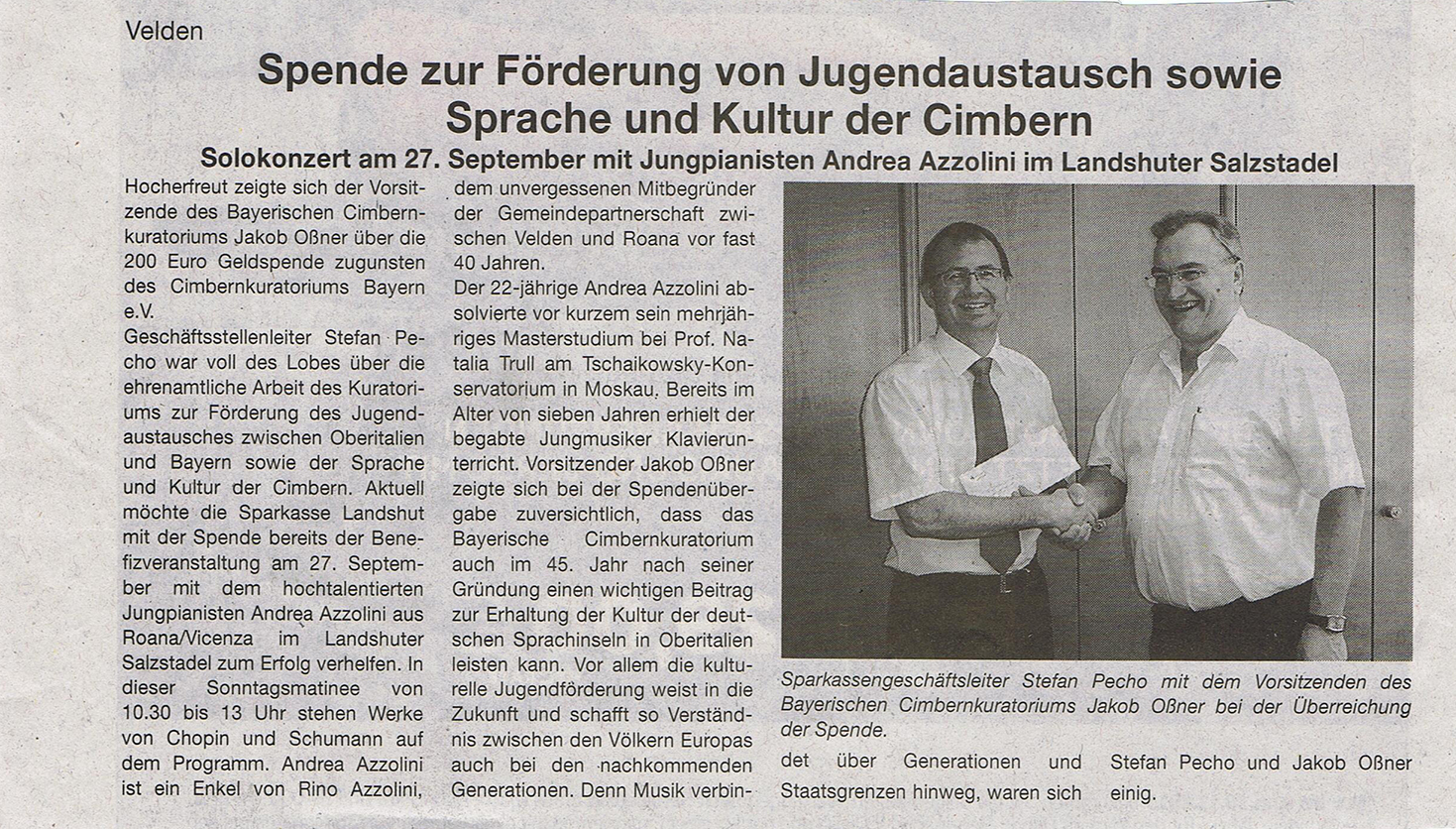 Spende zur Förderung von Jugendaustausch sowie Sprache und Kultur der Cimbern